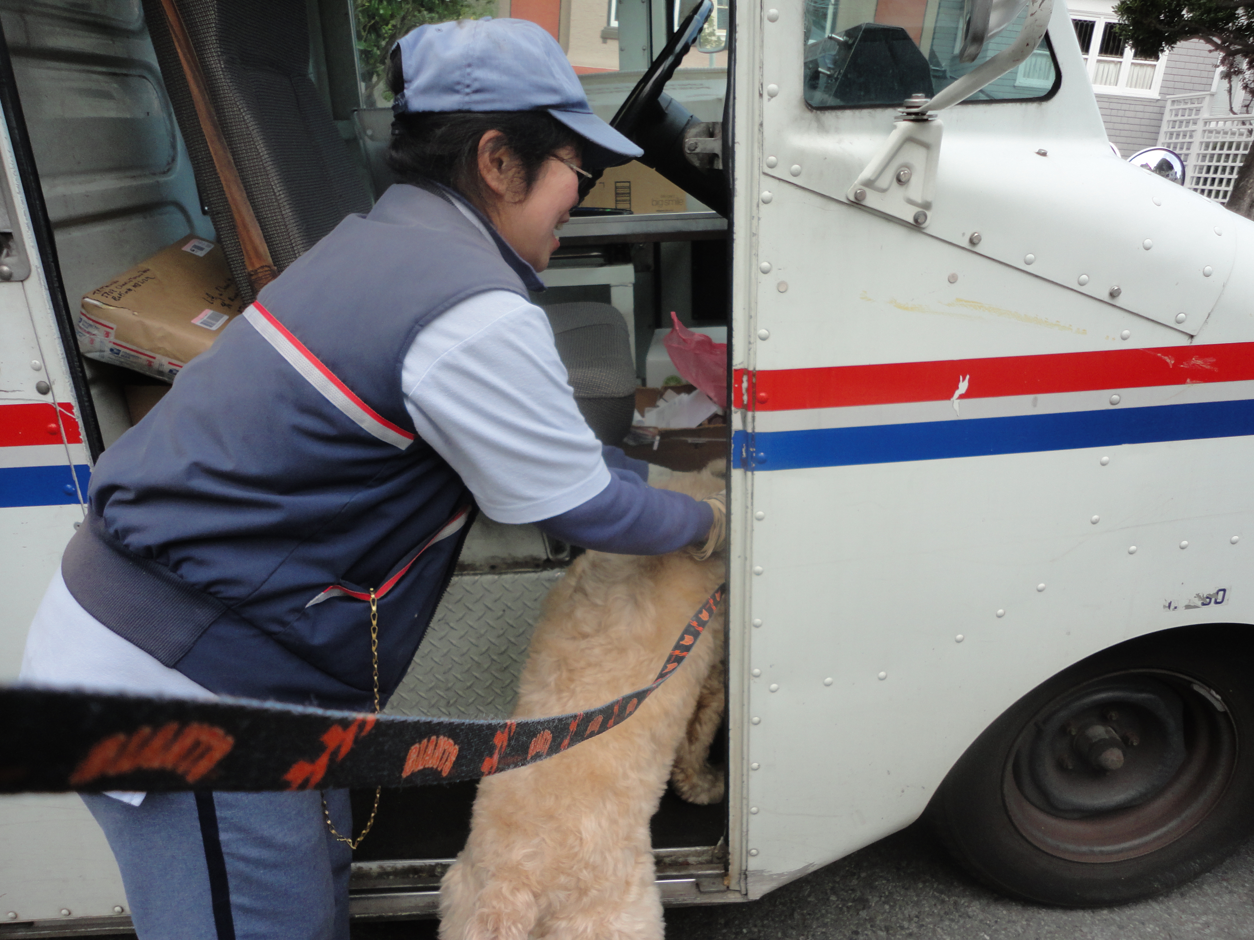 In addition to all the “basics” enumerated above, I have what I realize and most dogs would agree is a very nice lifestyle. Some days are spent just lounging around in between my 4 daily walks, always alert to visitors such as my good friend, Nancy, our neighborhood’s postal carrier.